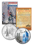 This WORLD TRADE CENTER – SEPTEMBER 11TH – 14TH ANNIVERSARY coin is a treasured collectible. Here is your opportunity to own or to gift, a beautifully colorized 2001 New York Statehood Quarter U.S. Coin, which has been enhanced with a beautiful colorized image by the Merrick Mint. Each coin comes in a premium coin capsule with a full color Certificate of Authenticity. This Legal Tender United States coin has been colorized with an application of special inks directly to the surface of the coin, using a unique and painstakingly multi-color coin process, which achieves a level of detail, color saturation, and durability that is #1 in the coin industry. The result is an everlasting colorized coin collectible of ultra-high quality. Each Statehood Quarter coin features an emblematic design of the New York state on the reverse and colorized image of ONE WORLD TRADE CENTER on the obverse (portrait of George Washington design).