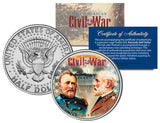 American Civil War - Generals ROBERT E. LEE & ULYSSES S. GRANT - JFK Kennedy Half Dollar U.S. Colorized Coin