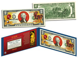A great gift, this CHINESE ZODIAC – YEAR OF THE HORSE uncirculated U.S. $2 Bill is Genuine Authentic Legal Tender of the United States, which has been enhanced with colorized images. The colorized images are accomplished through a revolutionary new authentic & genuine colorization process pioneered by The Merrick Mint, creating a collectible work of art. Each bill comes displayed in a blue folio with a Certificate of Authenticity to guarantee that your bills are authentic and recognized by every monetary authority around the world, therefore assuring its Collector Edition status. Each $2 Bill is in FRESH, CRISP, UNCIRCULATED condition, and was directly removed from untouched wrapped Federal Reserve sealed packs. Former U.S. President Thomas Jefferson is featured on the obverse of the note, along with the special colorization overlay. The Signing of the Declaration of Independence by John Trumbull is featured on the reverse. It is the only U.S. Currency note that features two Presidents, John Adams and Thomas Jefferson, and it is one of the most rarely seen BILLS in circulation and actual use.