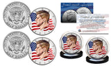 Here is your chance to own this beautifully colorized Flowing Flag 2018 JFK Kennedy Half Dollar U.S. 2-Coin Set which includes both Philadelphia and Denver Mintage. These high-quality, genuine Legal Tender United States coins have been colorized using a unique painstaking multi-color authentic process by the Merrick Mint. Colorizing coins involves the unique application of special inks directly to the surface of a coin that achieves a level of detail, color saturation, and durability that is #1 in the coin industry. The result is an everlasting colorized coin collectible of ultra-high quality. Each coin comes in a premium coin capsule with a display stand. The 2-coin set comes with a Certificate of Authenticity to guarantee that your coins are authentic and recognized by every monetary authority around the world, assuring its Collector Edition status.