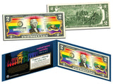 This U.S. Legal Tender MARRIAGE EQUALITY - LANDMARK SUPREME COURT RULING colorized $2 Bill is a historic keepsake collectible, which celebrates the June 26, 2015 Supreme Court ruling legalizing same-sex marriage nationwide. The full colorized images on the bill are accomplished through a revolutionary new authentic & genuine colorization process pioneered by The Merrick Mint. This historic bill comes beautifully displayed in a blue folio with a Certificate of Authenticity. Each $2 Bill is in FRESH, CRISP, UNCIRCULATED condition, and was directly removed from untouched wrapped Federal Reserve sealed packs. Former U.S. President Thomas Jefferson is featured on the obverse of the note, along with the special colorization overlay. The Signing of the Declaration of Independence by John Trumbull is featured on the reverse. It is the only U.S. Currency note that features two Presidents, John Adams and Thomas Jefferson, and it is one of the most rarely seen BILLS in circulation and actual use.