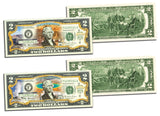 For the Special Low Price of $12.95 you will receive both $2 Bills honoring the most popular National Parks in the United States....GRAND CANYON & YELLOWSTONE! This is an opportunity to acquire a true Collector’s Item, a pair of genuine U.S. $2 Bill that are enhanced with a special colorization process by The Merrick Mint. Never before has a $2 bill been enhanced with colorization, making it the most ornate and historically attractive piece of U.S. currency. Each $2 Bill is in FRESH, CRISP, UNCIRCULATED condition, and was directly removed from untouched wrapped Federal Reserve sealed packs. Former U.S. President Thomas Jefferson is featured on the obverse of the note, along with the special colorization overlay. The Signing of the Declaration of Independence by John Trumbull is featured on the reverse. It is the only U.S. Currency note that features two Presidents, John Adams and Thomas Jefferson, and it is one of the most rarely seen BILLS in circulation and actual use. The colorization is of the highest quality, which is made possible only through new colorized technology developed by The Merrick Mint.