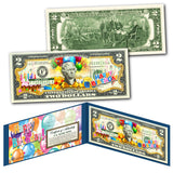 • HAPPY BIRTHDAY Keepsake Gift Colorized $2 Bill U.S. Genuine Legal Tender with Folio
