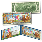 This HAPPY BIRTHDAY uncirculated $2 Bill is Genuine Authentic Legal Tender of the United States, which has been enhanced with beautiful colorized images. The full colorized images are accomplished through a revolutionary new authentic & genuine colorization process pioneered by The Merrick Mint, creating a collectible work of art. Each bill comes displayed in a blue folio with a Certificate of Authenticity to guarantee that your bills are authentic and recognized by every monetary authority around the world, therefore assuring its Collector Edition status. Each $2 Bill is in FRESH, CRISP, UNCIRCULATED condition, and was directly removed from untouched wrapped Federal Reserve sealed packs. Former U.S. President Thomas Jefferson is featured on the obverse of the note, along with the special colorization overlay. The Signing of the Declaration of Independence by John Trumbull is featured on the reverse. It is the only U.S. Currency note that features two Presidents, John Adams and Thomas Jefferson, and it is one of the most rarely seen BILLS in circulation and actual use.
