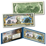 This WWII - THEN & NOW Raising the Flag on IWO JIMA uncirculated U.S. $2 Bill is Genuine Authentic Legal Tender of the United States, which has been enhanced with beautiful colorized images. The colorized images are accomplished through a revolutionary new authentic & genuine colorization process pioneered by The Merrick Mint, creating a collectible work of art. Each bill comes displayed in a blue folio with a Certificate of Authenticity to guarantee that your bills are authentic and recognized by every monetary authority around the world, therefore assuring its Collector Edition status. Each $2 Bill is in FRESH, CRISP, UNCIRCULATED condition, and was directly removed from untouched wrapped Federal Reserve sealed packs. Former U.S. President Thomas Jefferson is featured on the obverse of the note, along with the special colorization overlay. The Signing of the Declaration of Independence by John Trumbull is featured on the reverse. It is the only U.S. Currency note that features two Presidents, John Adams and Thomas Jefferson, and it is one of the most rarely seen BILLS in circulation and actual use.