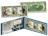 John F. Kennedy was the 35th President of the United States, serving from January 1961 until he was assassinated in November 1963. The assassination had an effect on many people, not only in the U.S. but around the world. Many vividly remember where they were when first learning of the news that Kennedy was assassinated. This John F. Kennedy 50th Anniversary of the Assassination uncirculated $2 Bill is Genuine Authentic Legal Tender of the United States, which has been enhanced with beautiful colorized images of John F. Kennedy and his family. The colorized images are accomplished through a revolutionary new authentic & genuine colorization process pioneered by The Merrick Mint. Included is a blue display portfolio plus a Certificate of Authenticity to guaranty that your bills are authentic and recognized by every monetary authority around the world, and assuring its Collector Edition status. Only genuine Legal Tender $2 United States Bills are used for this unique colorization process. Each $2 Bill is in FRESH, CRISP, UNCIRCULATED condition, and was directly removed from untouched wrapped Federal Reserve sealed packs. Former U.S. President Thomas Jefferson is featured on the obverse of the note, along with the special colorization overlay. The Signing of the Declaration of Independence by John Trumbull is featured on the reverse. It is the only U.S. Currency note that features two Presidents, John Adams and Thomas Jefferson, and it is one of the most rarely seen BILLS in circulation and actual use.