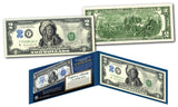 This bill is genuine Legal Tender United States Currency. The artists of the Merrick Mint have used an advanced technology over this modern uncirculated United States $2 bill, enhancing it with images from the 1899 Five-Dollar Silver Certificate Indian Chief Banknote, to create this collectible work of art. Your bill is guaranteed authentic. The five-dollar silver certificate has always been one of the most popular denominations to collect and the 1899 $5 silver certificate is one of the most famous banknotes in the world. It features a portrait of Native American, Running Antelope, in full headdress. The only American Indian ever depicted on U.S. paper money.