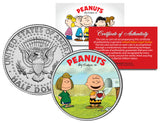 Here is your opportunity to own or gift the “PEANUTS VALENTINE’S – CHARLIE BROWN & PEPPERMINT PATTY” colorized JFK Kennedy Half Dollar U.S. Coin, which has been enhanced with a beautifully colorized image by the Merrick Mint. Each coin comes in a premium coin capsule with a full color Certificate of Authenticity to guarantee that your coin is authentic and recognized by every monetary authority around the world. This Legal Tender United States coin has been colorized with an application of special inks directly to the surface of the coin, using a unique and painstakingly multicolor coin process, which achieves a level of detail, color saturation, and durability that is #1 in the coin industry. The result is an everlasting colorized coin collectible of ultra-high quality. The Kennedy half dollar is a U.S. fifty cent coin with coin year and mint marks chosen at random.