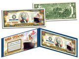 This uncirculated $2 Bill is Genuine Authentic Legal Tender of the United States, which has been enhanced with beautiful colorized images of RMS TITANIC – The World's Largest Liner April 14, 1912. The full colorized images are accomplished through a revolutionary new authentic & genuine colorization process pioneered by The Merrick Mint, creating a collectible work of art. Each bill comes displayed in a blue folio with a Certificate of Authenticity to guarantee that your bills are authentic and recognized by every monetary authority around the world, therefore assuring its Collector Edition status. Each $2 Bill is in FRESH, CRISP, UNCIRCULATED condition, and was directly removed from untouched wrapped Federal Reserve sealed packs. Former U.S. President Thomas Jefferson is featured on the obverse of the note, along with the special colorization overlay. The Signing of the Declaration of Independence by John Trumbull is featured on the reverse. It is the only U.S. Currency note that features two Presidents, John Adams and Thomas Jefferson, and it is one of the most rarely seen BILLS in circulation and actual use.