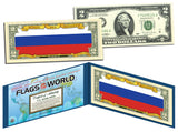 • RUSSIA - Official Flags of the World Genuine Legal Tender U.S. $2 Two-Dollar Bill Currency Bank Note