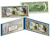 This SEPTEMBER 11 MEMORIALS uncirculated U.S. $2 Bill is Genuine Authentic Legal Tender of the United States, which has been enhanced with colorized images of the 9/11 Memorials: 9/11 Living Memorial Plaza (Israel), Tear Drop Memorial (New Jersey), and National September 11 Memorial & Museum (New York). The full colorized images are accomplished through a revolutionary new authentic & genuine colorization process pioneered by The Merrick Mint, creating a collectible work of art. Each bill comes displayed in a blue folio with a Certificate of Authenticity to guarantee that your bills are authentic and recognized by every monetary authority around the world, therefore assuring its Collector Edition status. Each $2 Bill is in FRESH, CRISP, UNCIRCULATED condition, and was directly removed from untouched wrapped Federal Reserve sealed packs. Former U.S. President Thomas Jefferson is featured on the obverse of the note, along with the special colorization overlay. The Signing of the Declaration of Independence by John Trumbull is featured on the reverse. It is the only U.S. Currency note that features two Presidents, John Adams and Thomas Jefferson, and it is one of the most rarely seen BILLS in circulation and actual use.