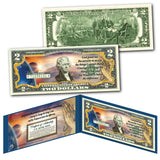 This SERENITY PRAYER uncirculated $2 Bill is Genuine Authentic Legal Tender of the United States. The full colorized images are accomplished through a revolutionary new authentic & genuine colorization process pioneered by The Merrick Mint, creating a collectible work of art. Each bill comes displayed in a blue folio with a Certificate of Authenticity to guarantee that your bills are authentic and recognized by every monetary authority around the world, therefore assuring its Collector Edition status. Each $2 Bill is in FRESH, CRISP, UNCIRCULATED condition, and was directly removed from untouched wrapped Federal Reserve sealed packs. Former U.S. President Thomas Jefferson is featured on the obverse of the note, along with the special colorization overlay. The Signing of the Declaration of Independence by John Trumbull is featured on the reverse. It is the only U.S. Currency note that features two Presidents, John Adams and Thomas Jefferson, and it is one of the most rarely seen BILLS in circulation and actual use.